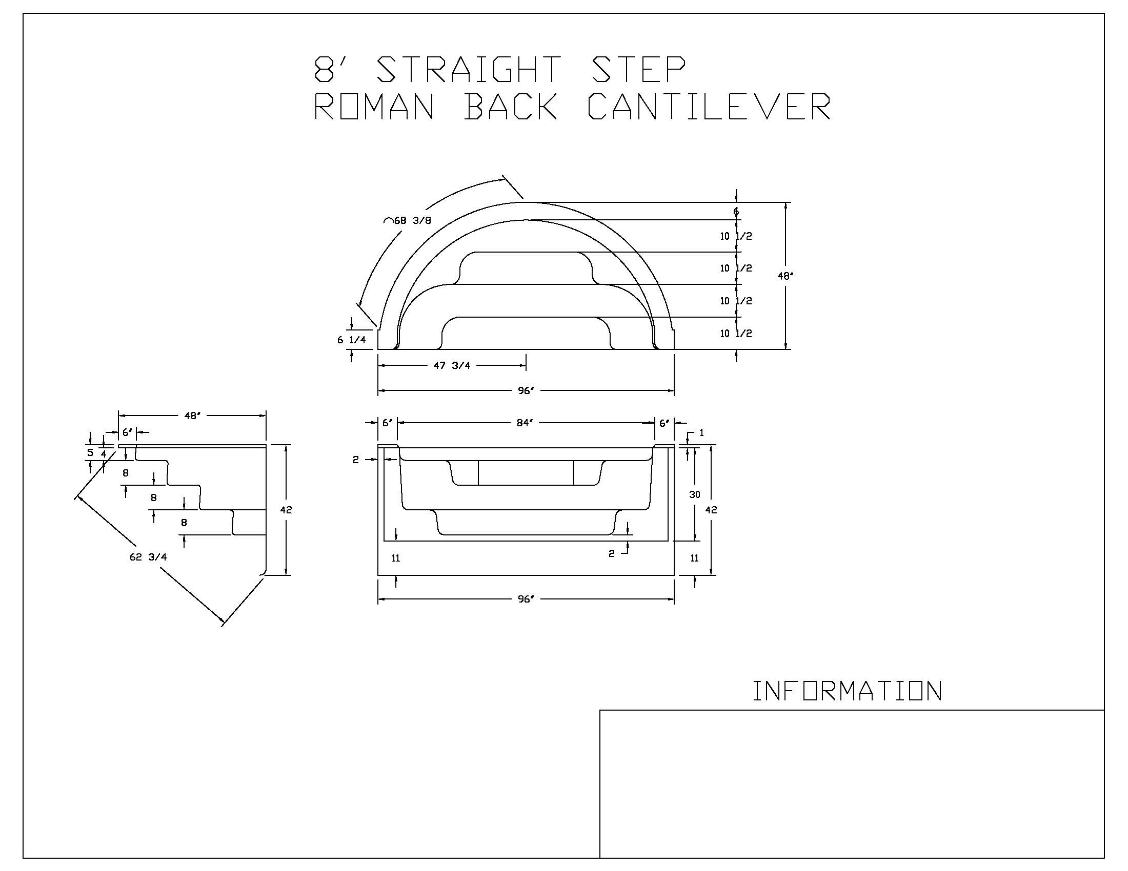 8' Straight Front Roman Back Cantilever Step Gray Granite